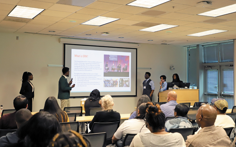 As an ENGAGES scholar, Woods worked on research to identify Cathepsin K, a potent human protease (meaning it breaks down proteins at a fast rate), as the main cause of elastin and collagen degradation in sickle cell–diseased arteries. Woods and other ENGAGES participants were also able to attend the Emerging Researchers National Conference in STEM, held in Washington, D.C. Servance says these conferences provide students with the opportunity to see more diversity in STEM fields, which they might not be able to witness in their local communities.